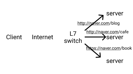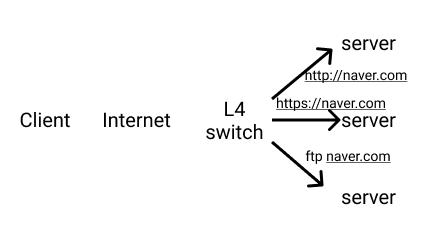 Layer 4 는 IP주소와 포트번호를 보고 스위칭한다. TCP, UDP 프로토콜의 헤더를 보고 해당지점으로 패킷을 전송한다. 예를 들면 http:// 라면 TCP/80으로 https://는 TCP/443 으로 보내는 것이다. ftp 또한 이곳에서 스위칭된다. (참고로 이 level에서 RoundRobin 알고리즘을 사용해 연결된 서버에 순차적으로 접속하도록 한다.) (라운드로빈 알고리즘 설명과 PS 문제 링크)