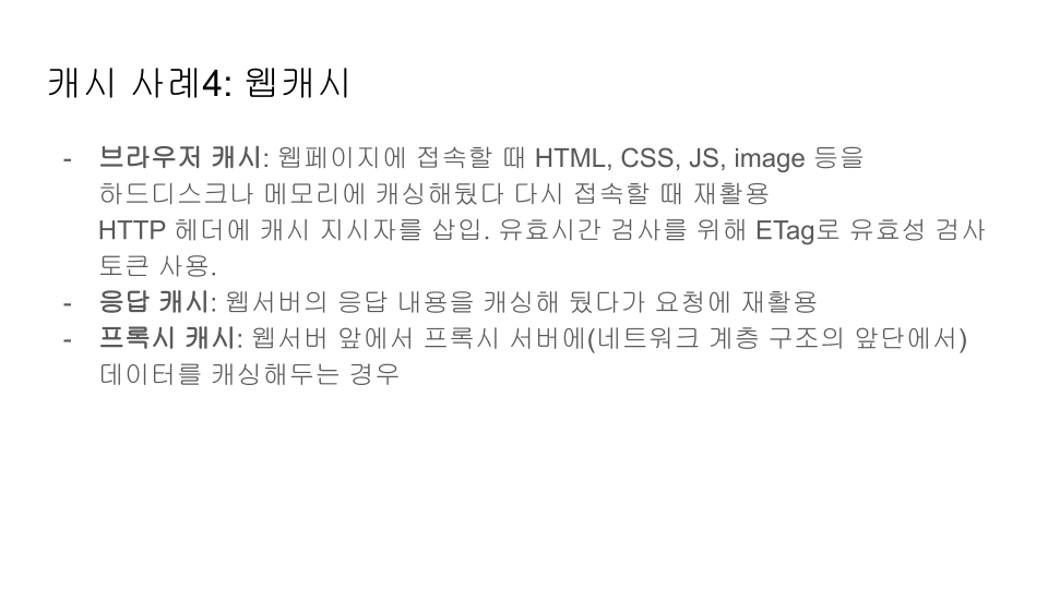 웹서비스의 곳곳에도 캐싱 기술이 사용됩니다.