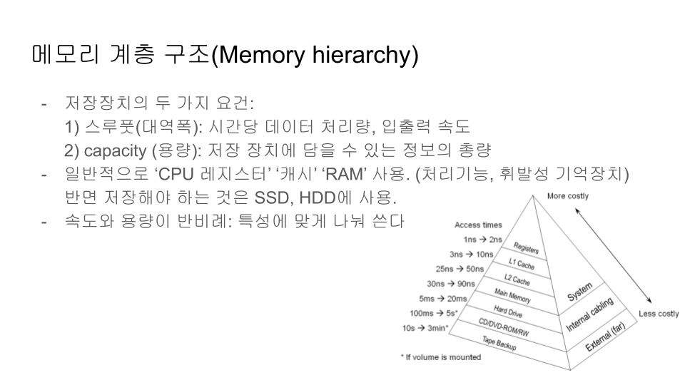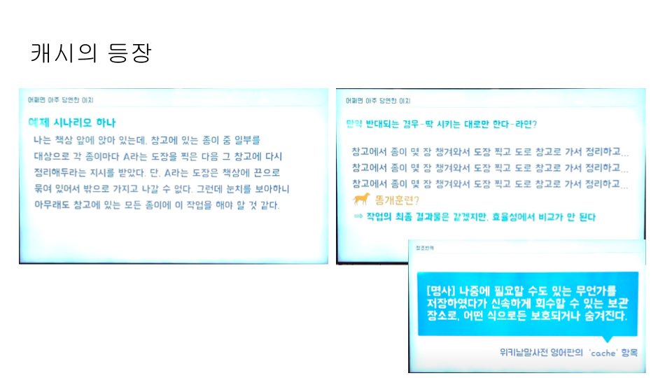 그런데 모든 데이터가 골고루 사용되는 것이 아니라 일부 데이터가 자주 쓰이기 때문에 이러한 데이터를 금방 가져다 쓸 수 있는 곳에 두면 효율이 높아집니다.