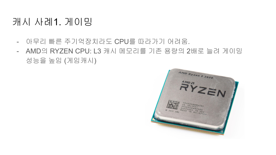 캐시는 컴퓨터의 효율을 높여주기 때문에 다양한 사례들이 있습니다. 첫번째로 캐시의 용량을 크게 늘려서 바로바로 가져다 쓰기 좋은 컴퓨터로 만들 수 있습니다.